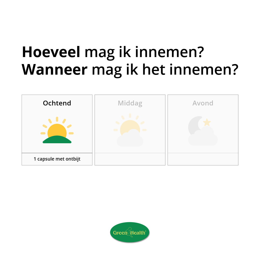 Volwassenen, dagelijks 1 tot 2 softgels innemen met water en bij voorkeur bij een